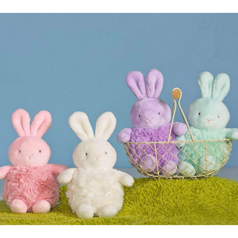 Ideal for cuddling and carrying! Durable stitching and child-safe materials These soft, huggable bunnies make perfect companions for children and delightful additions to any plush collection. Smooth plush head and limbs with fluffy, textured body. Embroidered eyes and pink nose.