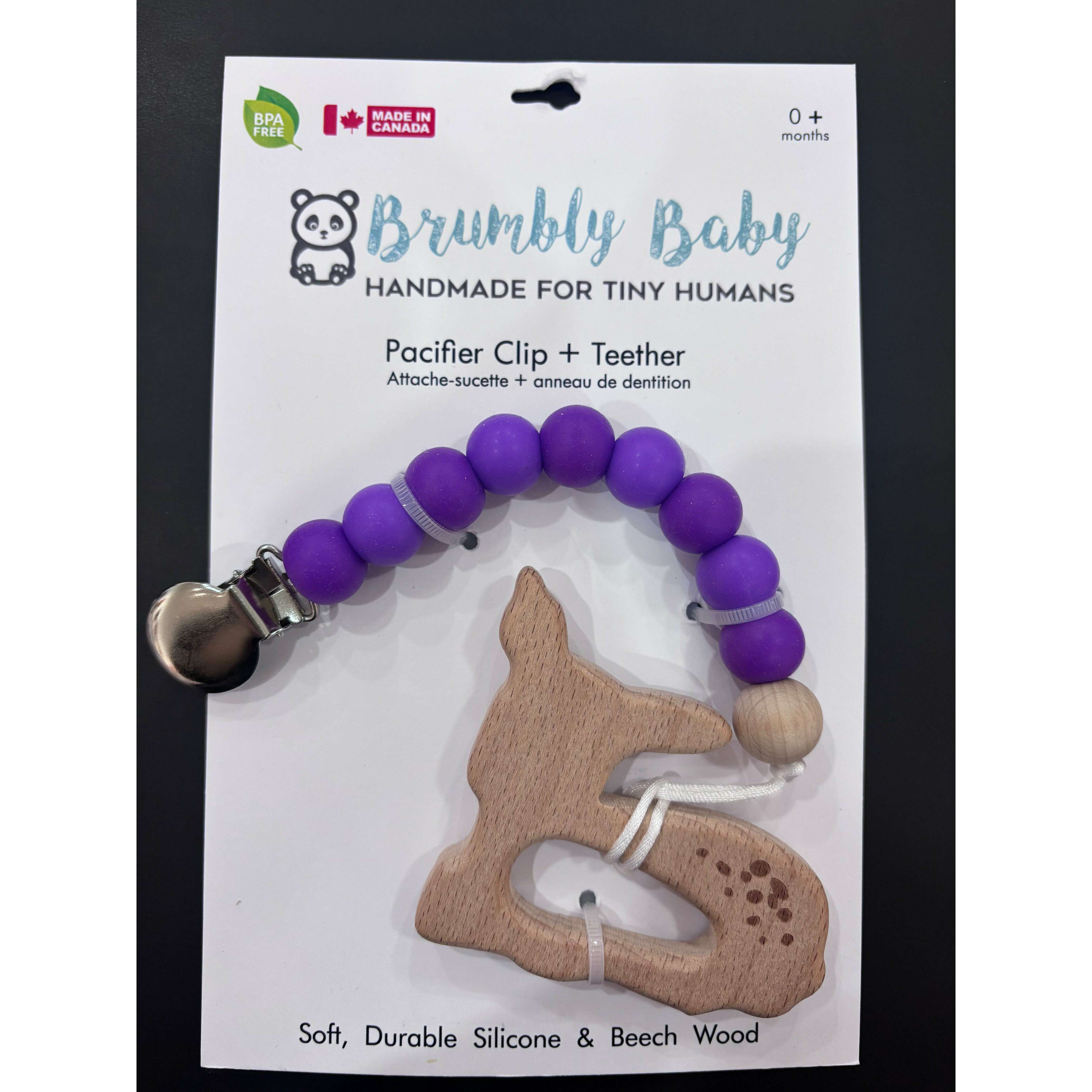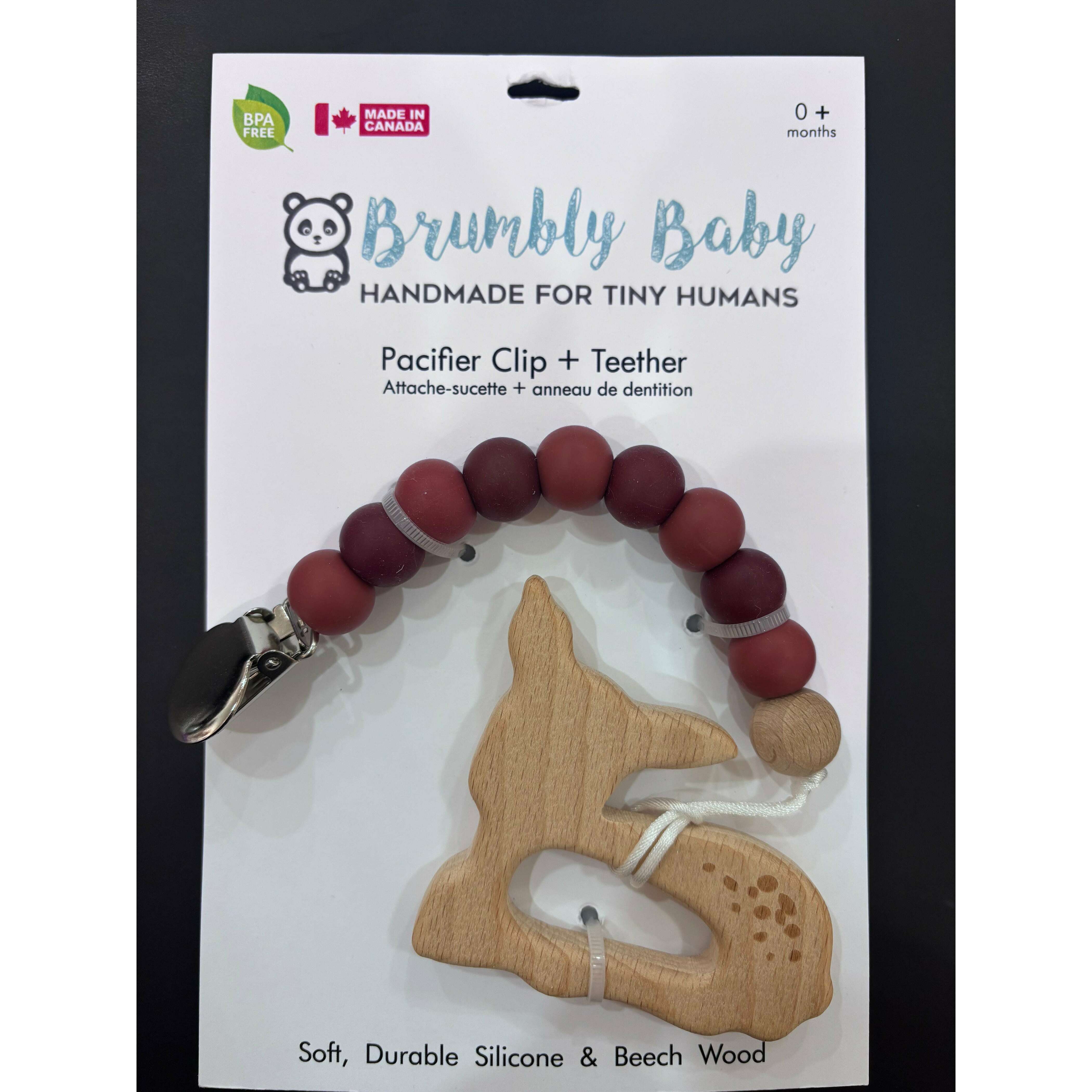 Brumbly Baby Pacifier Clip with Wooden Teether