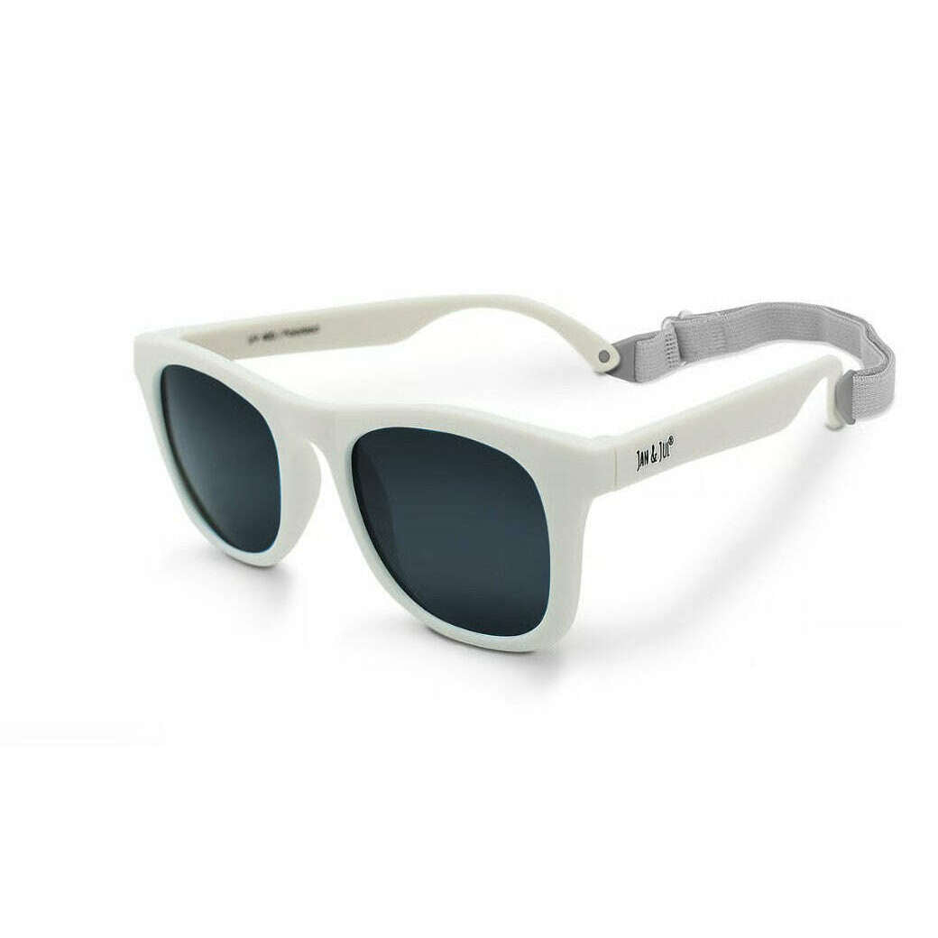 Jan & Jul Urban Xplorer sunglasses are virtually unbreakable and designed by parents. TPEE frames are flexible, lightweight, and durable. UV 400 lenses provide 100% UVA & UVB sun protection. Shatter-resistant TAC lenses are polarized for extra protection and glare-reduction. Safe for babies and toddlers, BPA, Phthalate, and PVC free. Stays-on with an adjustable and removable strap.
