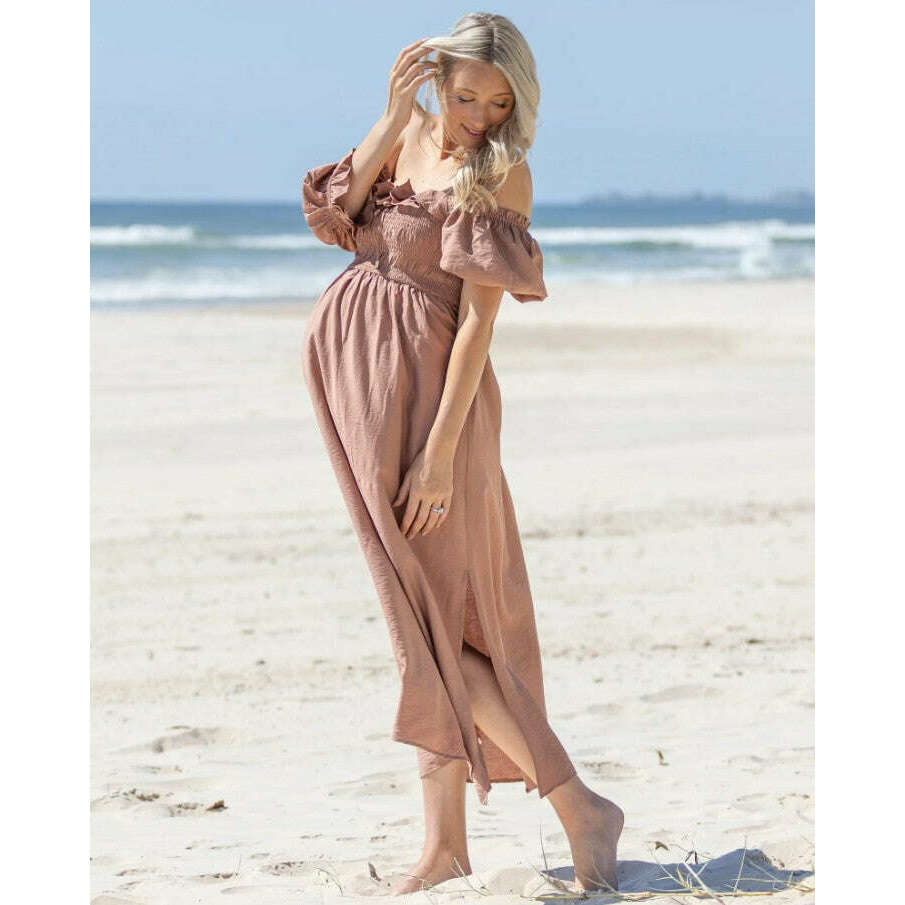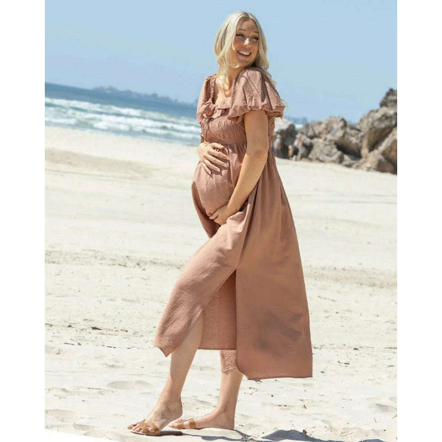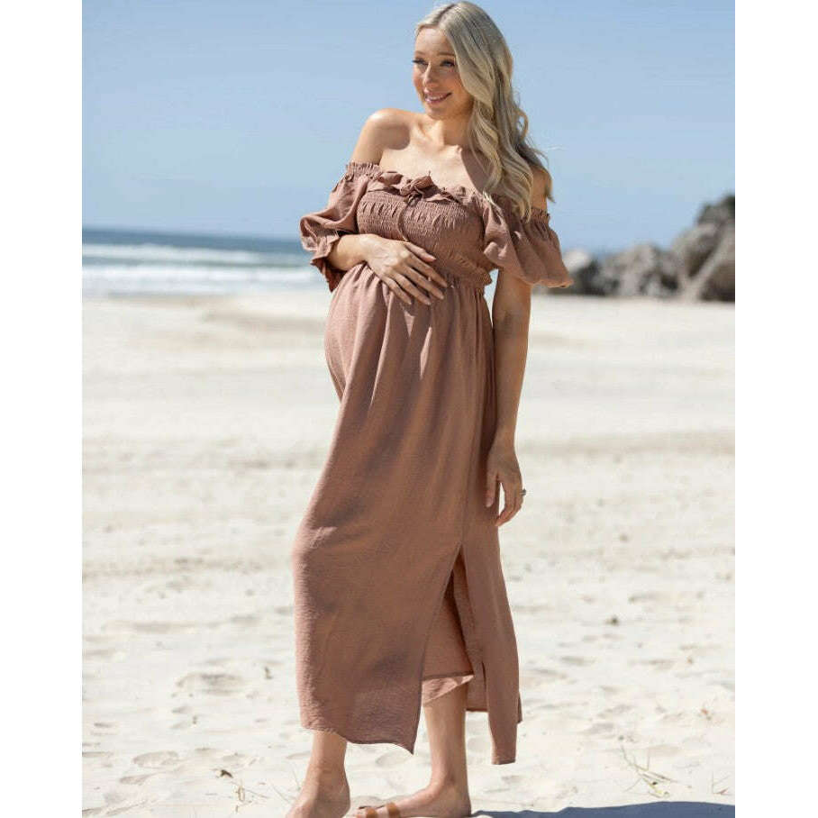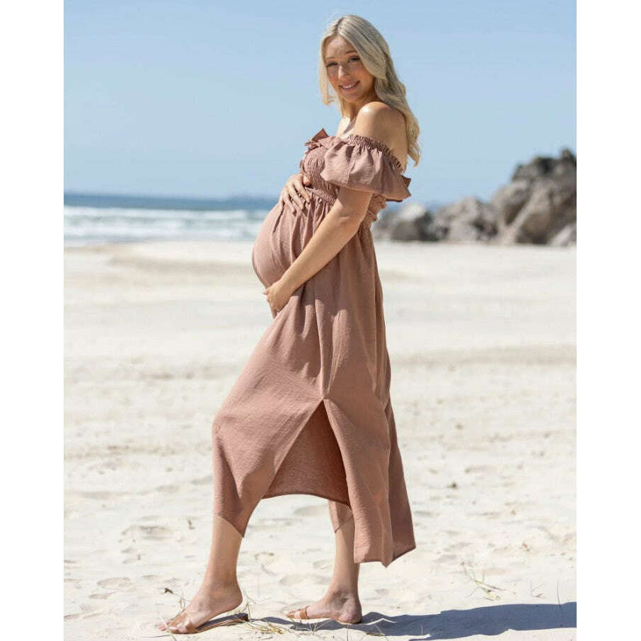 The Amber Maternity Dress is the perfect blend of style and practicality, designed to make you feel radiant for any occasion. From baby showers to holidays or nursing-friendly outings, this dress adapts beautifully to your needs. Featuring an elastic neckline for easy nursing access, you can wear it off-shoulder or on-shoulder for versatile looks.