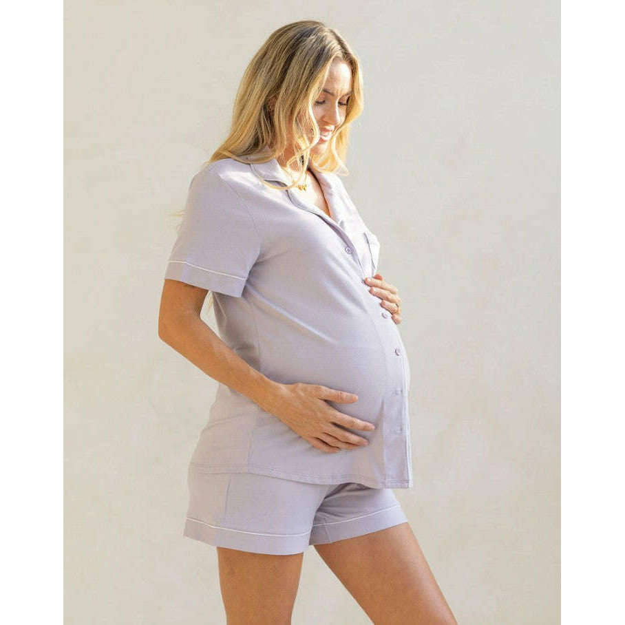 This ultra-soft classic pajama set is made of premium bamboo fabric and can be worn from pregnancy through breastfeeding and beyond. The short-sleeve shirt and pull-on shorts make these pajamas perfect for warmer weather (or hot flashes!), and the breathable bamboo fabric means you’ll stay cool and comfortable through the night. The top has easy, button-down nursing and skin-to-skin access, and the shorts have an over belly panel to accommodate size fluctuations common in pregnancy and postpartum. These classic pajamas have stylish piping so they look as good as they feel. So comfy you’ll wear them long after your breastfeeding journey is over.