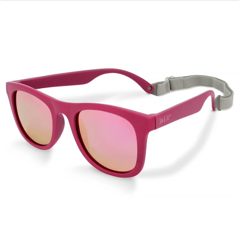 Jan & Jul Urban Xplorer sunglasses are virtually unbreakable and designed by parents. TPEE frames are flexible, lightweight, and durable. UV 400 lenses provide 100% UVA & UVB sun protection. Shatter-resistant TAC lenses are polarized for extra protection and glare-reduction. Safe for babies and toddlers, BPA, Phthalate, and PVC free. Stays-on with an adjustable and removable strap.