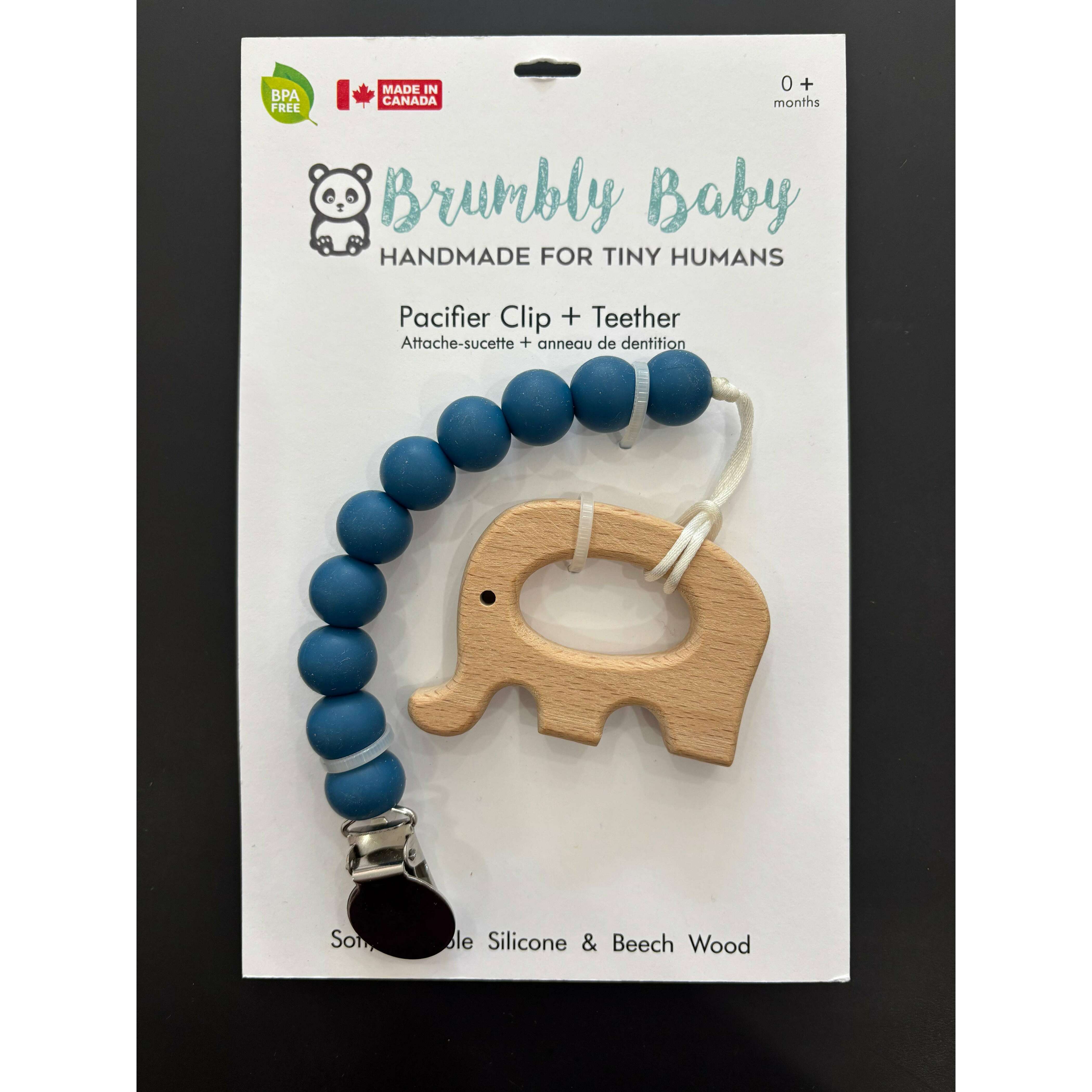Brumbly Baby Pacifier Clip with Wooden Teether